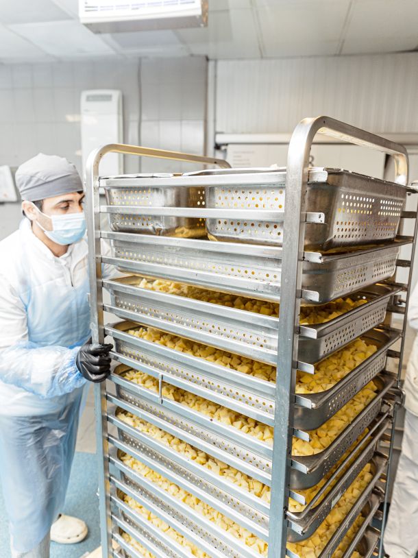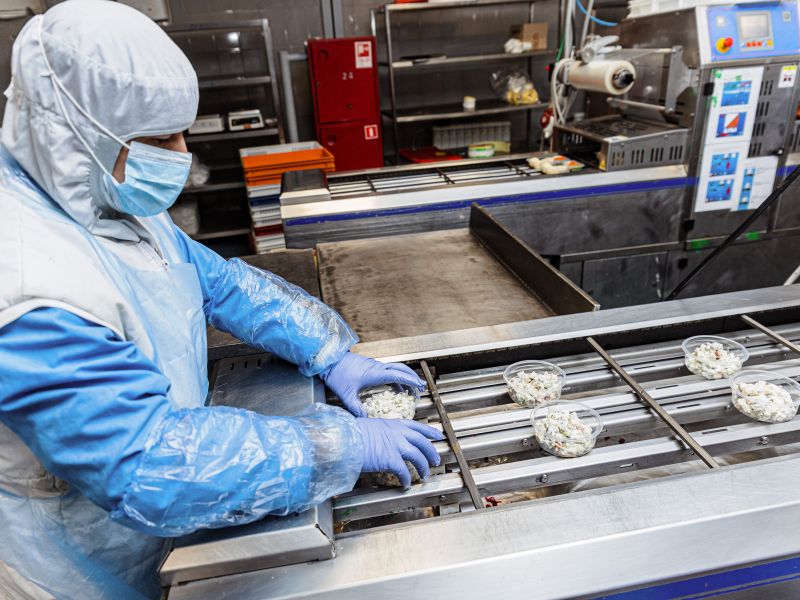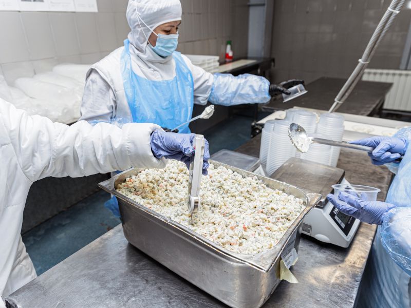 Перед фасовкой блюда замеряется температура внутри, после чего продукт упаковывают в газовой среде. Она препятствует развитию вредных микроорганизмов и помогает сохранить свежесть продукта